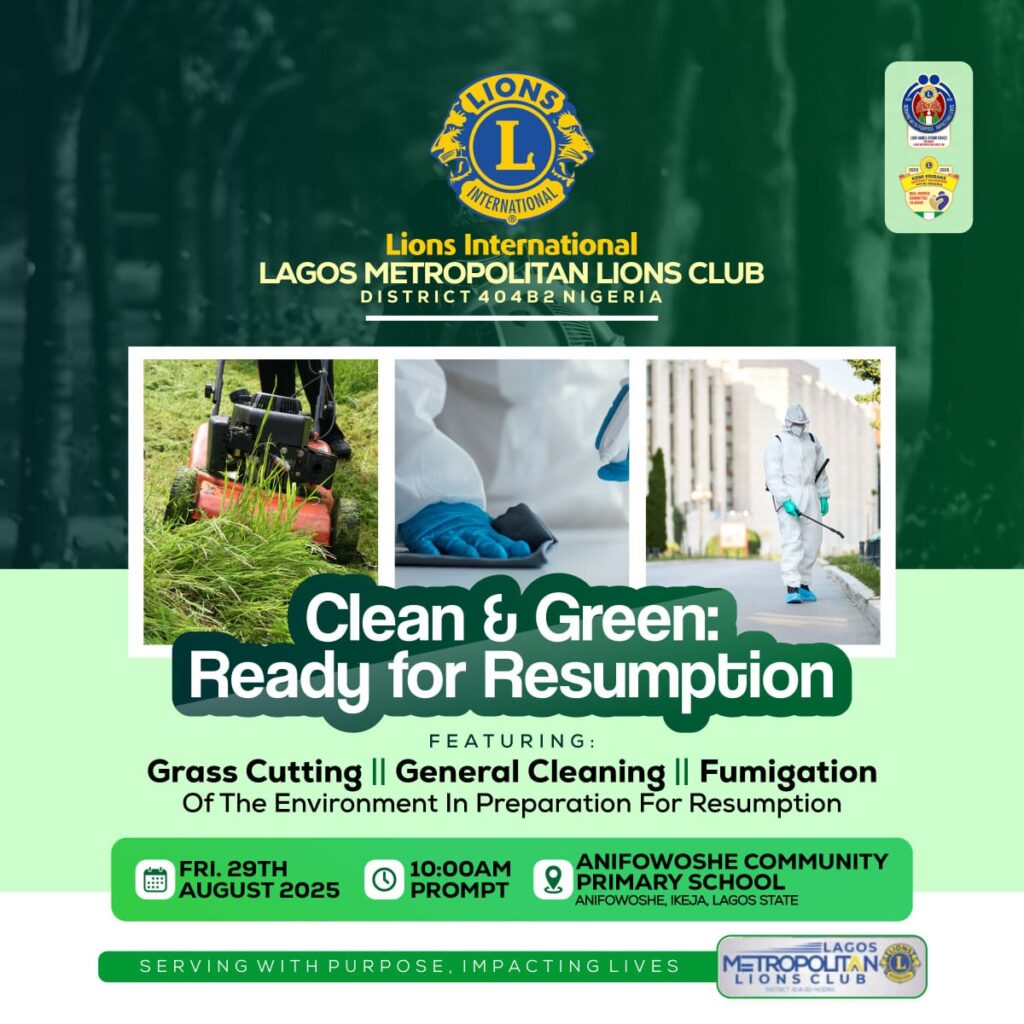 Lagos Metropolitan Lions Club invites you to our transformative Service Activity themed: “Clean & Green: Ready for Resumption” As pupils of Anifowoshe primary school prepare to resume another academic session, our mission is to ensure a safe, healthy, and welcoming environment for our children. This activity focuses on clearing overgrown bushes, eliminating hiding places for […]