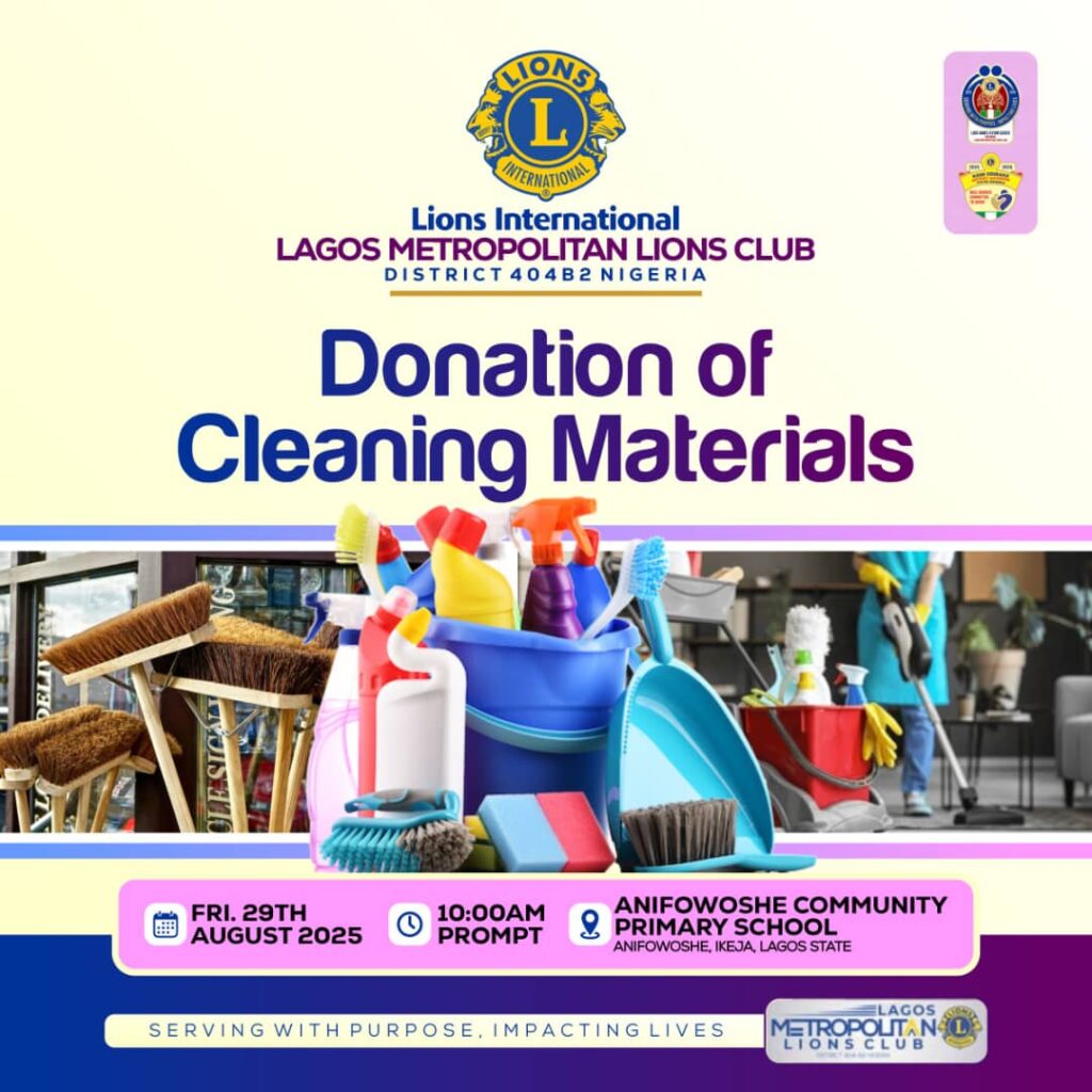 Lagos Metropolitan Lions Club, District 404-B2 Nigeria, invites you to our impactful Service Activity: “Donation of Cleaning Materials” This initiative aims to foster cleanliness and create a safe, healthy learning environment for our primary school children. Your presence will add value as we take this bold step toward community well-being. Venue: Anifowoshe Primary School, Beside […]